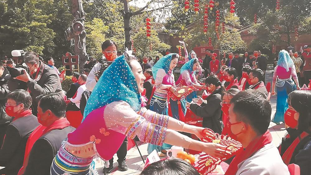 15日,在“虎年福見·世遺泉州:我在東海送全福”主題“福”文化活動(dòng)中,演員為觀眾送“福”。記者 王敏霞 黃瓊芬 攝