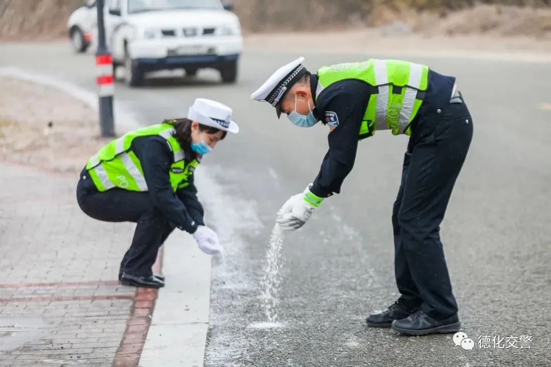 在持續(xù)的低溫天氣下,交警蜀黍頂風(fēng)冒雪、堅守一線,為過往絡(luò)繹不絕的車輛指引方向,守護(hù)大家的出行安全。2月19日晚,駐守各公路站的德化公路人頂寒風(fēng)冒冷雨,連夜加強公路巡查,重點檢查易結(jié)冰路段的路況,在易結(jié)冰路段鋪撒融雪劑以防路面結(jié)冰,保障通行安全。
