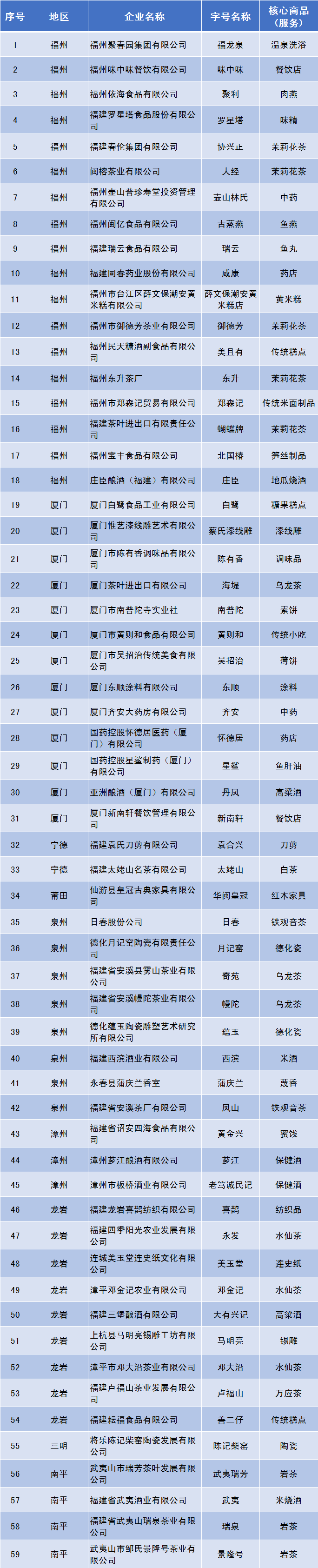 第六批“福建老字號”認定名單