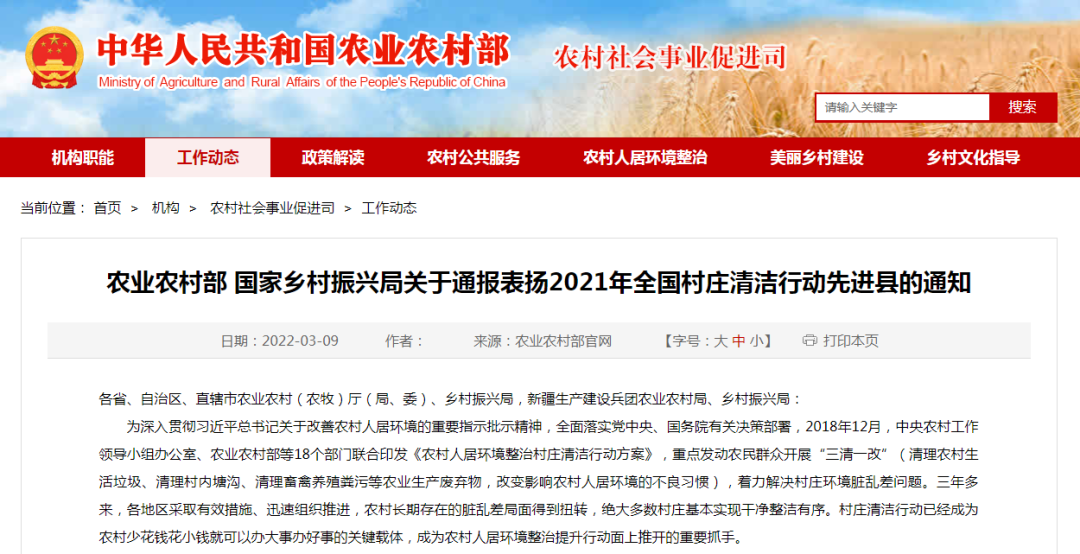 近日,農(nóng)業(yè)農(nóng)村部公布“2021年全國村莊清潔行動先進縣名單”,福建三地上榜,一起來看。