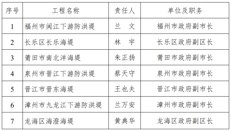 三大江堤、四大海堤防汛行政責(zé)任人名單