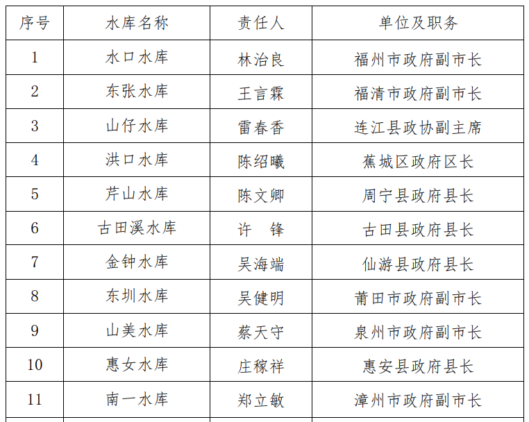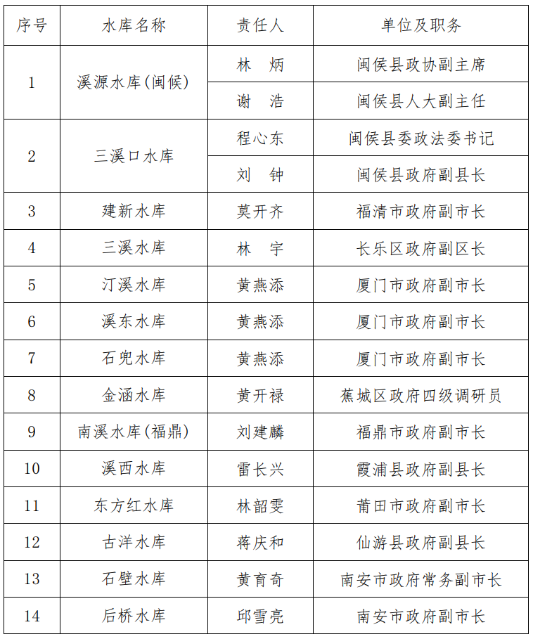 大型水庫防汛行政責(zé)任人名單