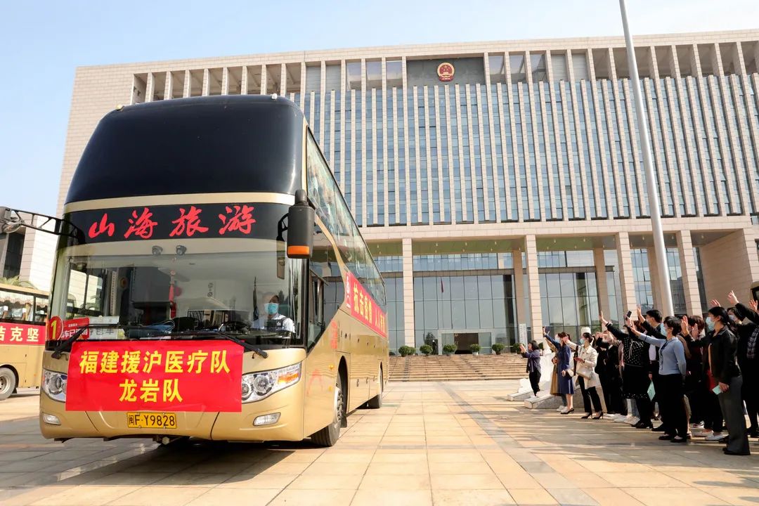 4月7日一早,龍巖援滬醫(yī)療隊(duì)在市行政中心集結(jié)完畢,出征上海。