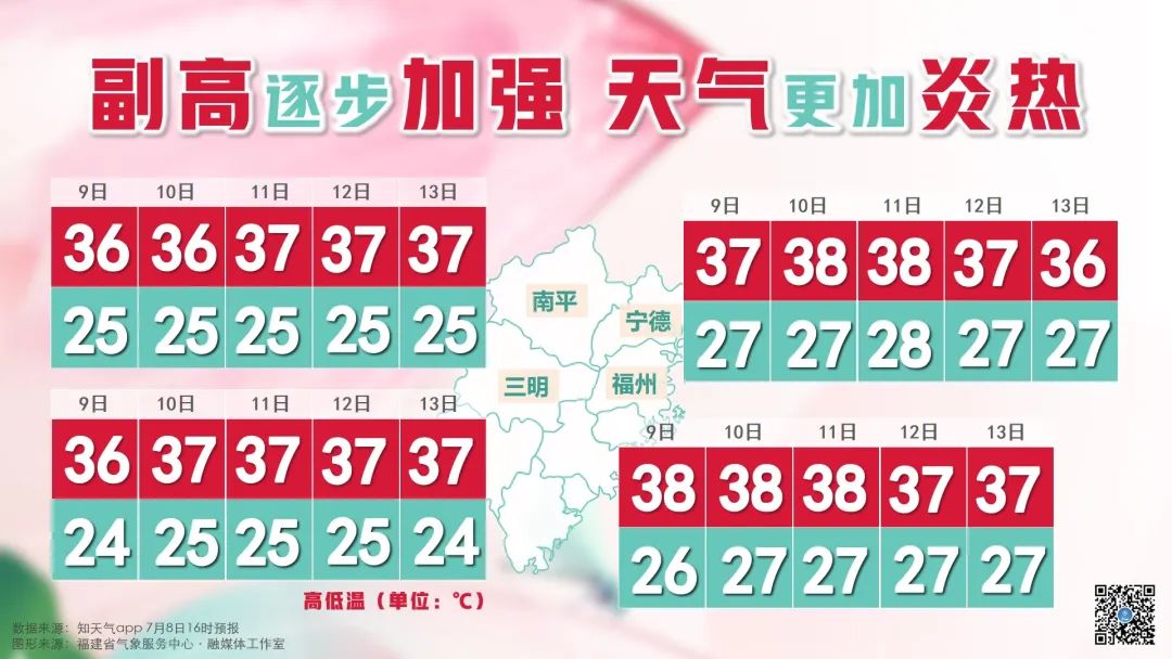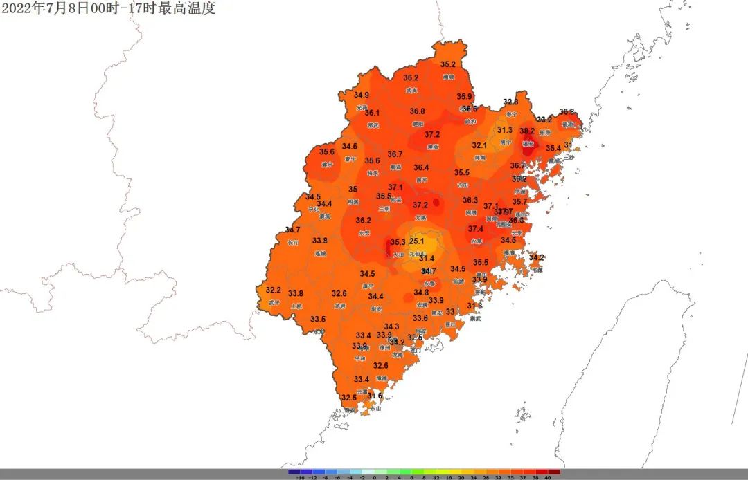 其中寧德福安市37.6℃為全省最高