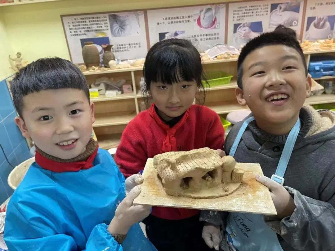 學(xué)校積極引進(jìn)陶藝非遺文化,挖掘陶藝文化資源,建設(shè)陶藝教室,打造陶藝特色課程,展示陶藝文化作品,營(yíng)造陶藝文化氛圍,讓學(xué)生充分感受非遺文化的魅力。陶藝特色課程采取循序漸進(jìn)方式,低年級(jí)以彩泥為鋪墊,為接觸陶泥搭建基本功;中年級(jí)初探陶泥,初步了解中國(guó)陶藝文化發(fā)展史,運(yùn)用各種輔材開展陶泥造型創(chuàng)作;高年級(jí)熟練技法,制定創(chuàng)作步驟并有序進(jìn)行創(chuàng)作,培育鑒賞能力,增強(qiáng)民族文化自信。同時(shí),學(xué)校還與江西景德、浙江龍泉等地校園陶藝工作坊建立學(xué)習(xí)共同體,特聘校外美術(shù)課程教師及當(dāng)?shù)孛耖g藝人參與課后服務(wù)。每周四的課后服務(wù)時(shí)間,孩子們齊聚“陶淘樂”,在老師的指導(dǎo)下,共同創(chuàng)造出一件件充滿童趣的小作品,在做中學(xué)到知識(shí),收獲喜悅。