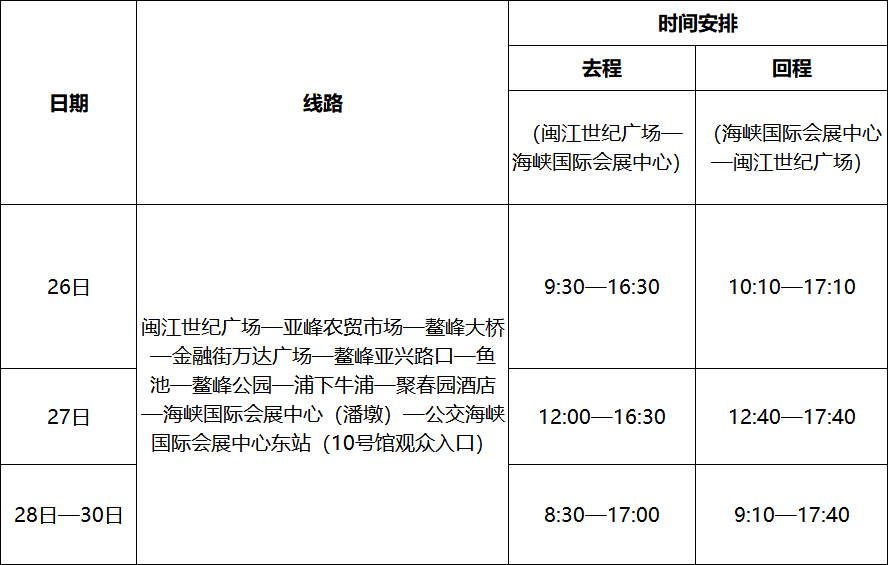 (1)可乘坐白湖亭——海峽國際會展中心區(qū)間專線,從白湖亭站出發(fā)直達海峽國際會展中心(1號館)。