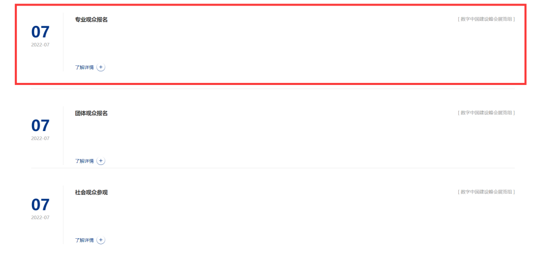 瀏覽器搜索“數字中國建設峰會”進入官網。點擊“觀眾報名”欄目,選擇“專業(yè)觀眾報名”。