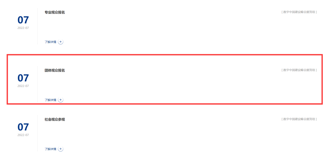 進入數字中國建設峰會官網,點擊“觀眾報名”欄目,選擇“團體觀眾報名”。