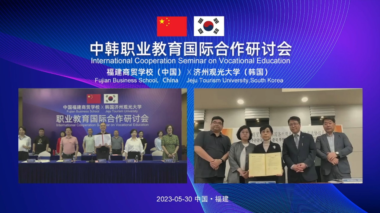 為加強國際人才培養(yǎng)、促進中外人文交流,2023年5月30日,中韓職業(yè)教育國際合作研討會在福建商貿(mào)學(xué)校成功舉辦。福建商貿(mào)學(xué)校校長郭曙光、副校長陳秀美、副校長黃登龍,韓國濟州觀光大學(xué)校長金圣圭、國際交流院長樸南奎出席會議,兩校相關(guān)部門負責(zé)人、力鋒國際、華窈企業(yè)等企業(yè)教育部門負責(zé)人參加會議。