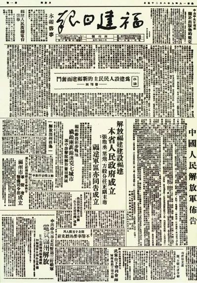 “為建設(shè)人民民主的新福建而奮斗。”炮火聲中,中國東南,煥然新生,《福建日?qǐng)?bào)》呱呱落地。