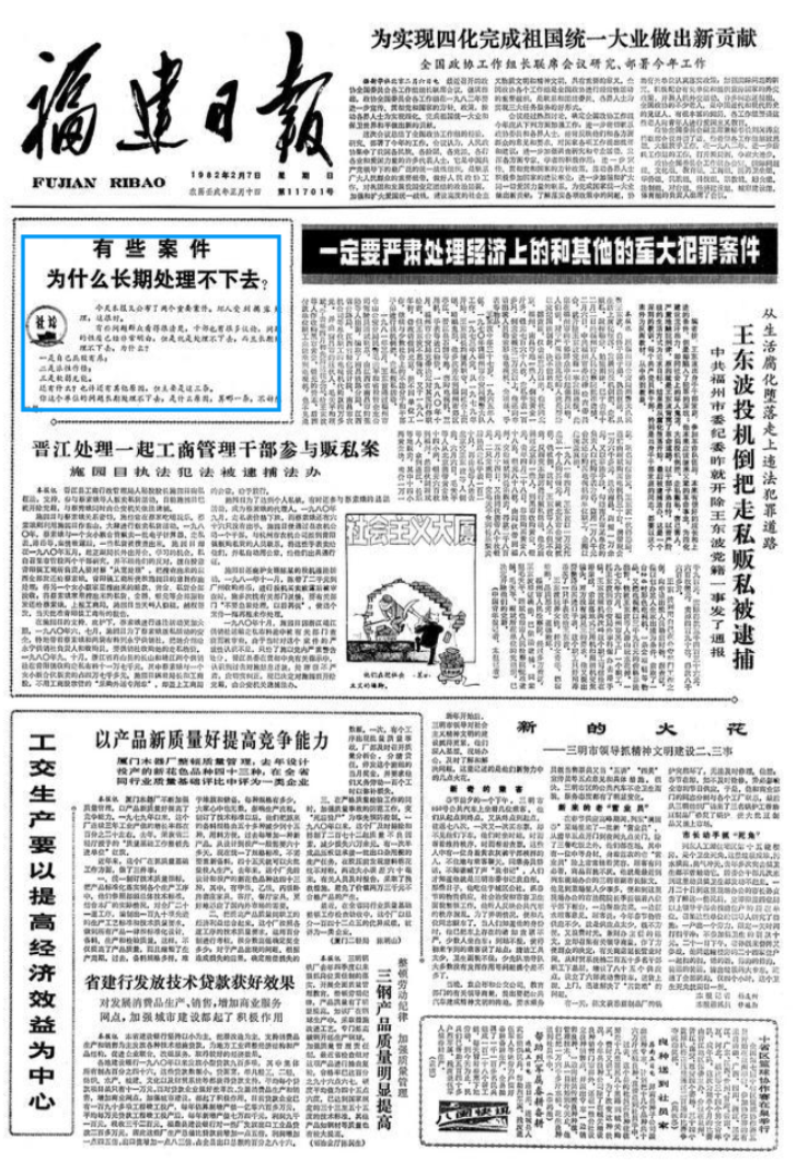1982年2月7日,《福建日?qǐng)?bào)》頭版頭條刊登時(shí)任中共福建省委書記項(xiàng)南同志撰寫的《有些案件為什么長期處理不下去》,全文含標(biāo)點(diǎn)只有163個(gè)字,被譽(yù)為新聞史上最短的社論。