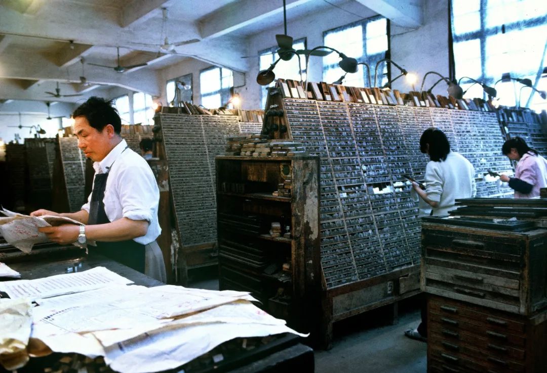 1988年的福建日?qǐng)?bào)排字車間。林輝龍 攝