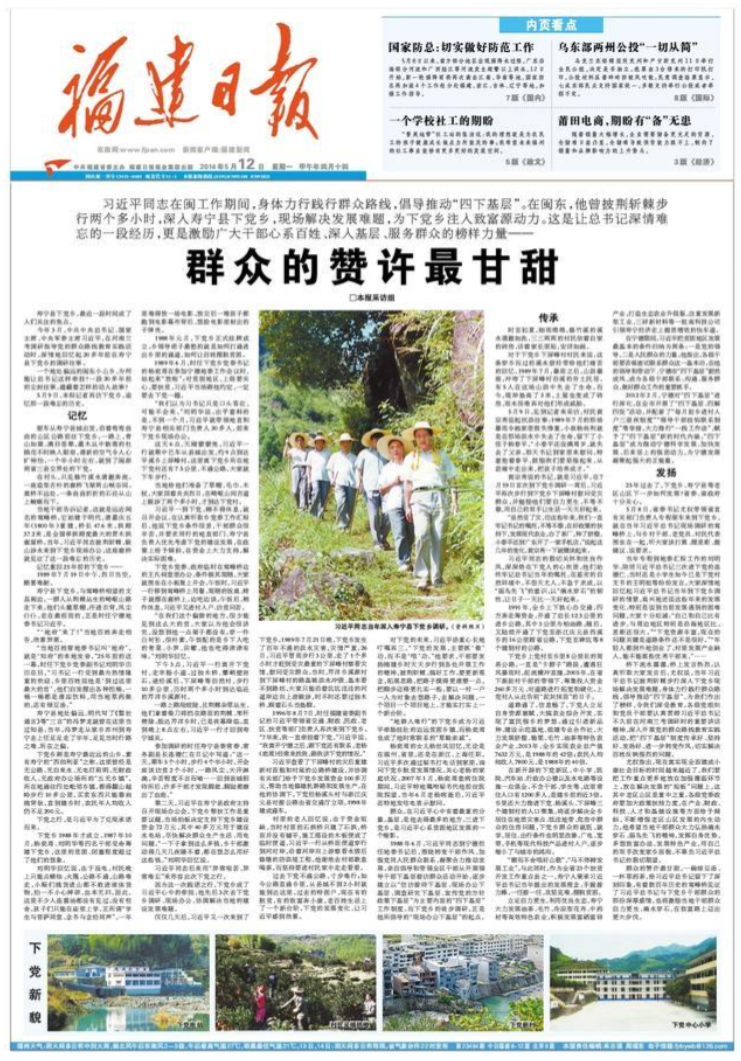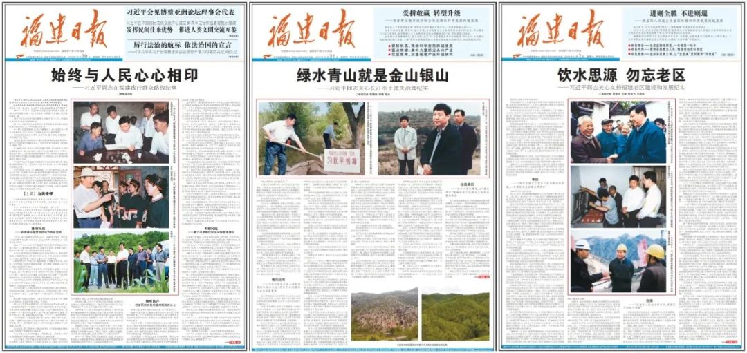 2014年5月至2015年11月期間,《福建日?qǐng)?bào)》共刊發(fā)《群眾的贊許最甘甜》等7篇“習(xí)近平福建紀(jì)事”。2017年4月,《福建日?qǐng)?bào)》在金磚國家領(lǐng)導(dǎo)人廈門會(huì)晤前,再次刊出7篇“習(xí)近平總書記在福建的探索與實(shí)踐”萬字長篇通訊,涵蓋黨建、發(fā)展、改革、開放、扶貧、信息化、文化等7個(gè)主題。