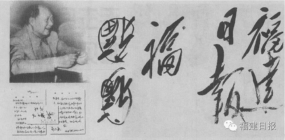 毛澤東主席揮毫寫下“福建日?qǐng)?bào)”四個(gè)大字。這版報(bào)頭從1965年元旦啟用,延續(xù)至今。