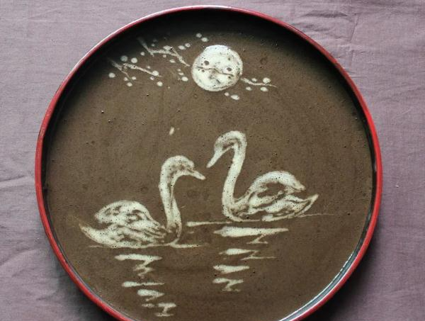 研膏烏龍茶湯幻變的茶百戲圖《相伴一生》。圖源:茶百戲
