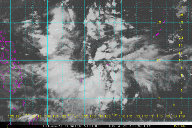 ▲葵花-9號(hào)衛(wèi)星監(jiān)測(cè)到的熱帶擾動(dòng)92W云圖動(dòng)畫(時(shí)間:6月5日01時(shí)30分至6月5日08時(shí)30分)。