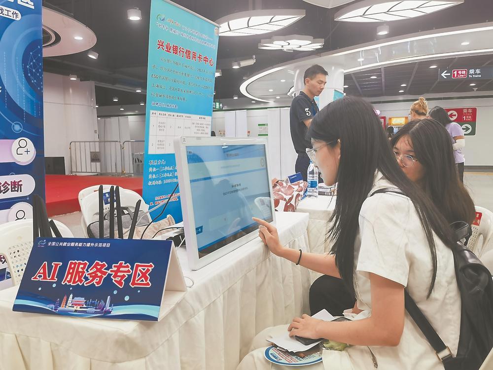 福州地鐵招聘會(huì)上,學(xué)生使用“AI智能”做職業(yè)性格測(cè)評(píng)。記者 趙文娟 攝