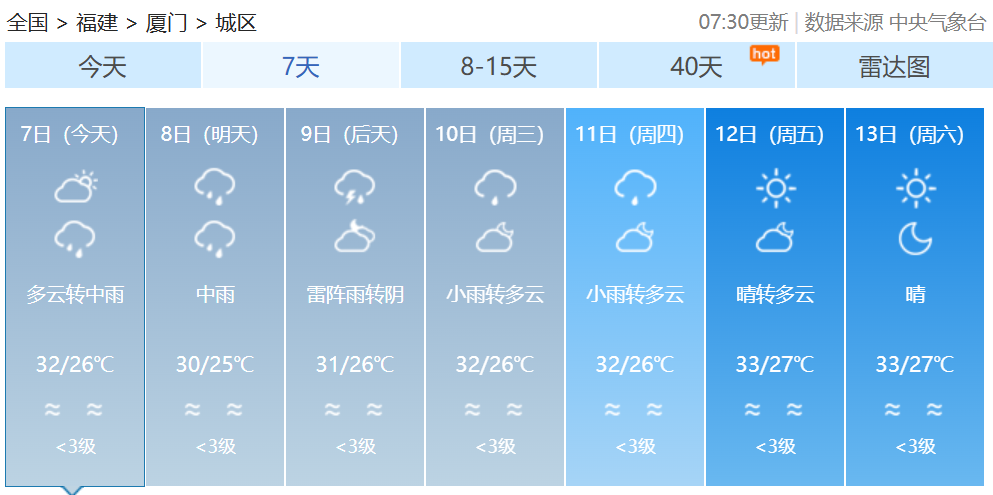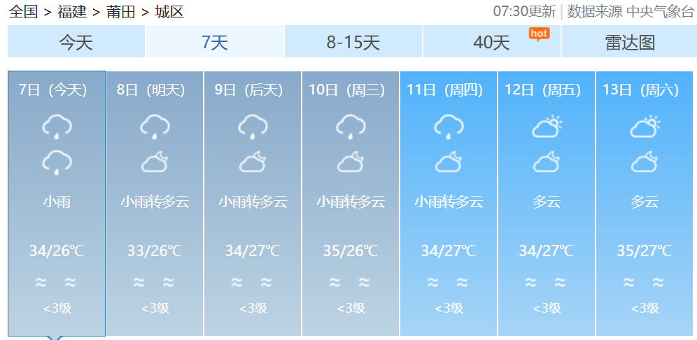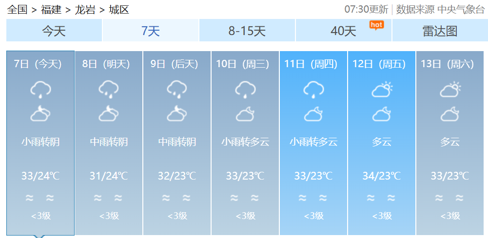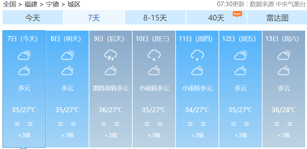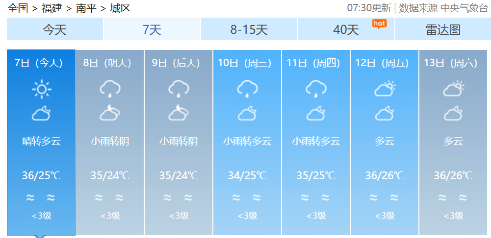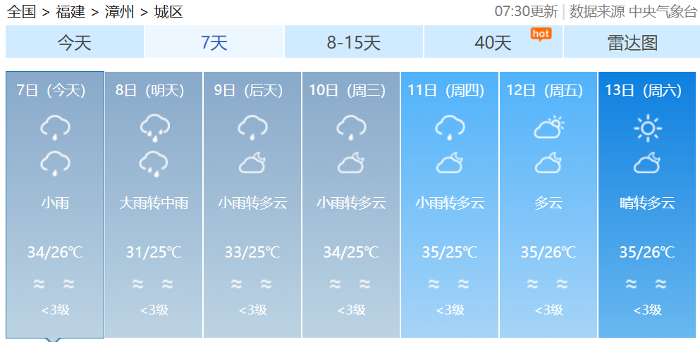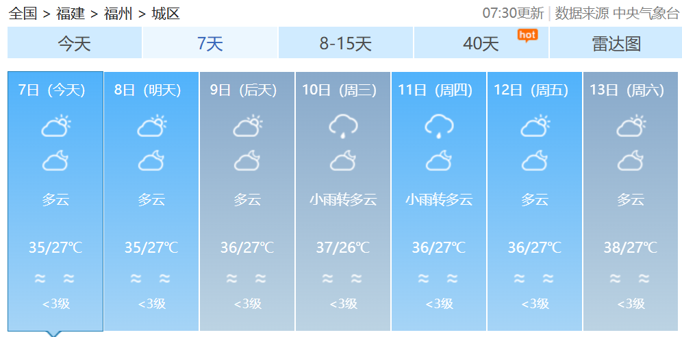 福建各地一周天氣預(yù)報