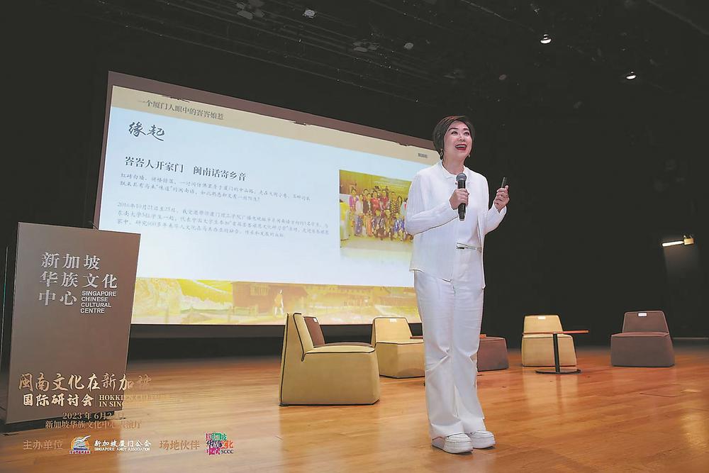 黃婉彬在新加坡華族文化中心向全世界介紹閩南文化。(資料圖片)