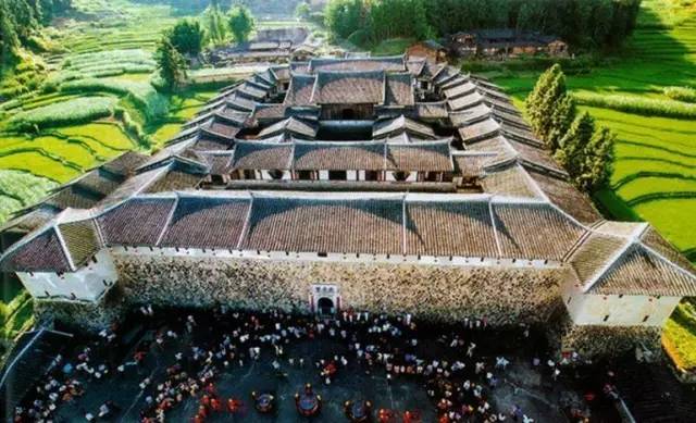 “安于未雨綢繆固,貞觀沐風(fēng)謐靜多”,從這對寫在安貞堡大門兩旁的對聯(lián)里,便可感受到土堡人民的安逸生活。這座建于清朝光緒十一年的安貞堡,依山而建,歷時(shí)十四年才得以完工,是福建省罕見的大型民居建筑。從空中看,安貞堡坐落于層層疊疊的梯田之上,氣勢不凡。