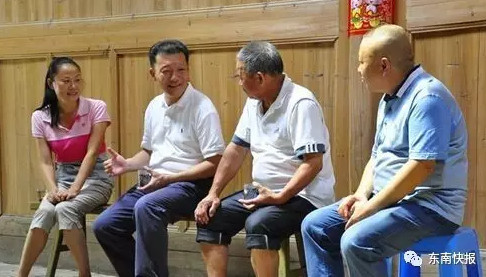 廖俊波(左二)走村入戶與村民談心,了解群眾真實(shí)想法(資料圖)