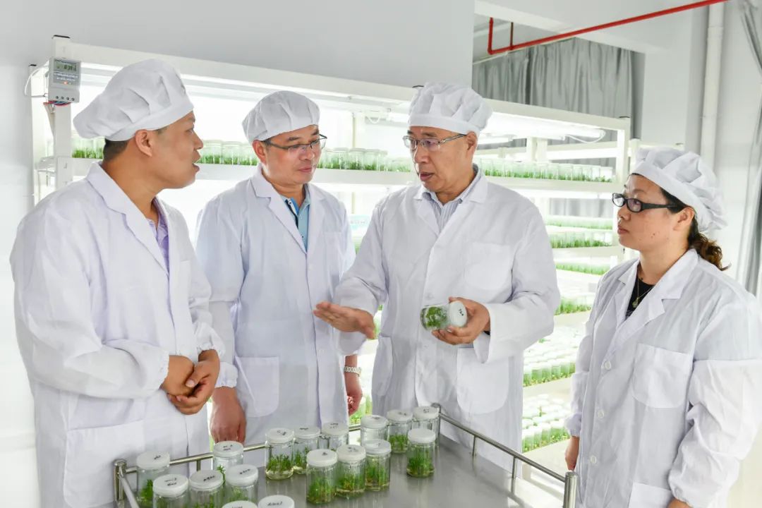 南京林業(yè)大學(xué)原副校長、教授、博士生導(dǎo)師施季森(右二),福建林科院黨委委員、林業(yè)研究所所長、教授級高工鄭仁華(左二)是杉木育種研究領(lǐng)域的泰斗,這是他們在指導(dǎo)洋口國有林場杉木育種科研團(tuán)隊(duì)第四代科技工作者、組培領(lǐng)域帶頭人李勇(左一)進(jìn)行組培研究。(資料圖片)