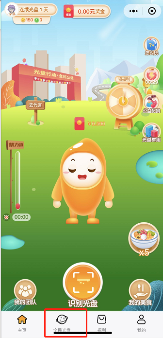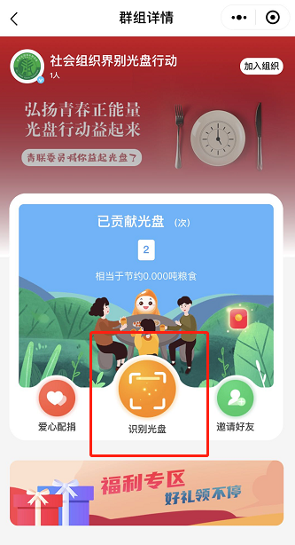 5、點(diǎn)擊“識(shí)別光盤”按鈕,經(jīng)由AI智能識(shí)別是否光盤,打卡成功后即可領(lǐng)取獎(jiǎng)勵(lì)。