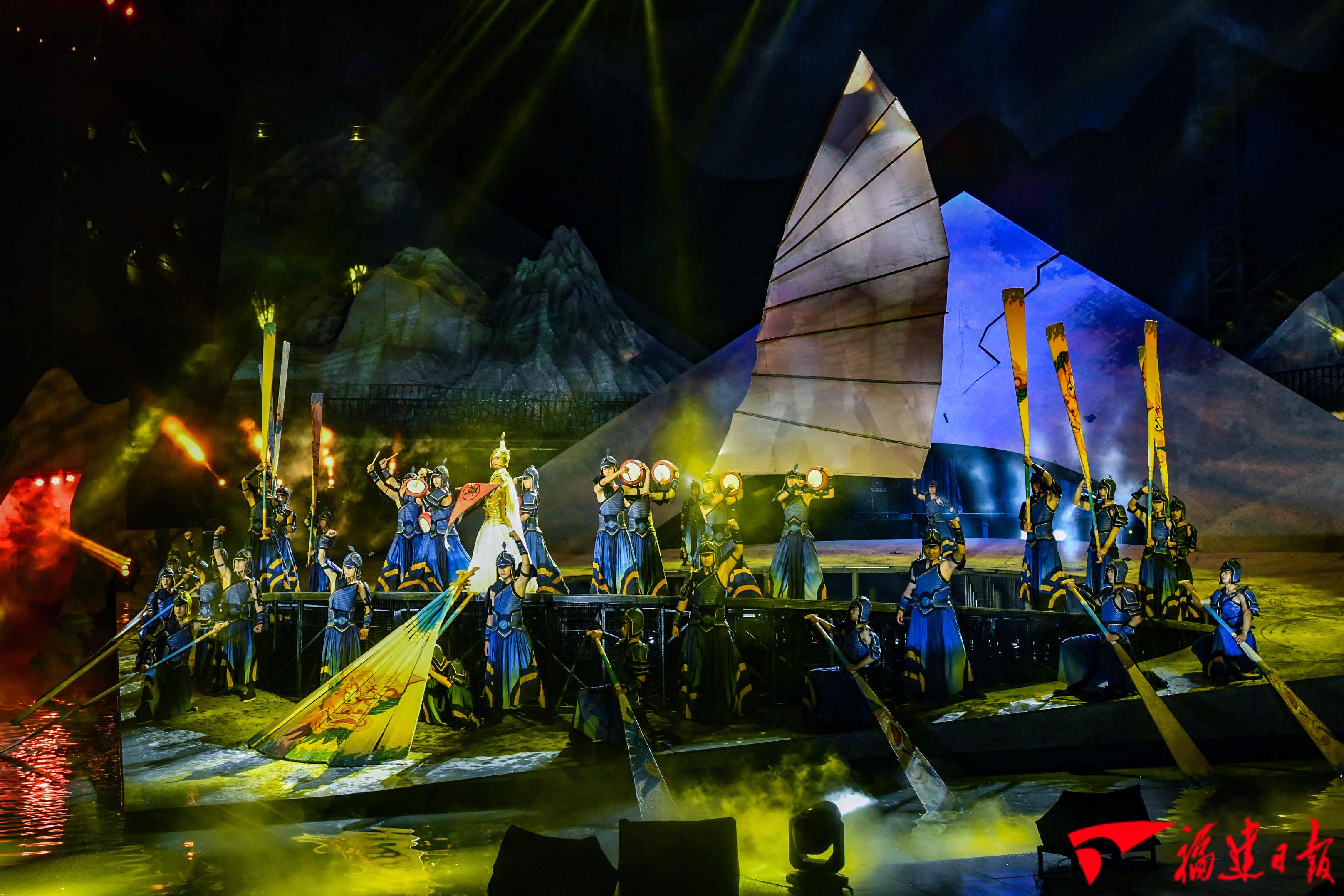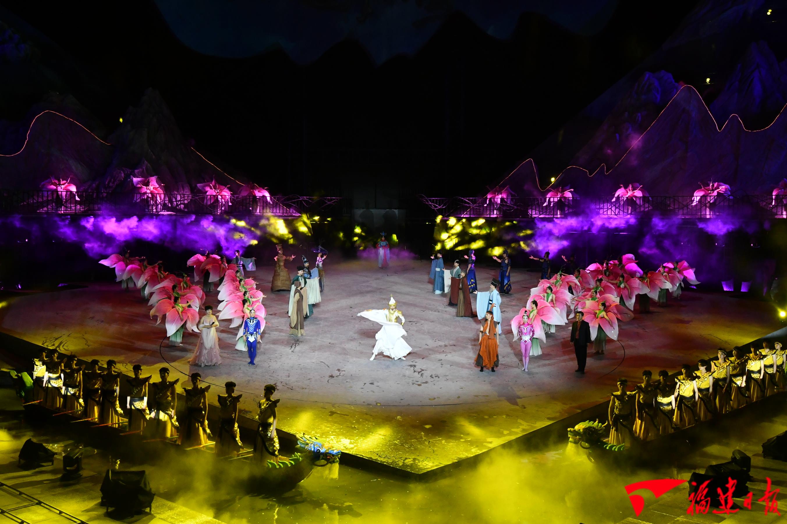 本屆開(kāi)幕式首次將大型山水畫境文藝演出《山水畫境延平問(wèn)?!分冻晒怼钒嵘衔枧_(tái),整場(chǎng)演出通過(guò)舞美、聲光、音效等呈現(xiàn)形式,突出延平的人文和傳說(shuō),講述延平故事、南平故事和福建故事。