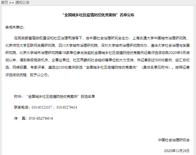 據(jù)悉,全國(guó)城鄉(xiāng)社區(qū)疫情防控優(yōu)秀案例征集評(píng)選活動(dòng)由民政部基層政權(quán)司指導(dǎo),中國(guó)社會(huì)治理研究會(huì)主辦,活動(dòng)于2020年5月啟動(dòng),從來(lái)自全國(guó)25個(gè)省、市、自治區(qū)的各級(jí)黨政機(jī)關(guān)、社區(qū)兩委、社會(huì)組織和企事業(yè)單位參選案例中評(píng)選出100個(gè)全國(guó)優(yōu)秀案例。其中,福建省3個(gè)優(yōu)秀案例成功入選。