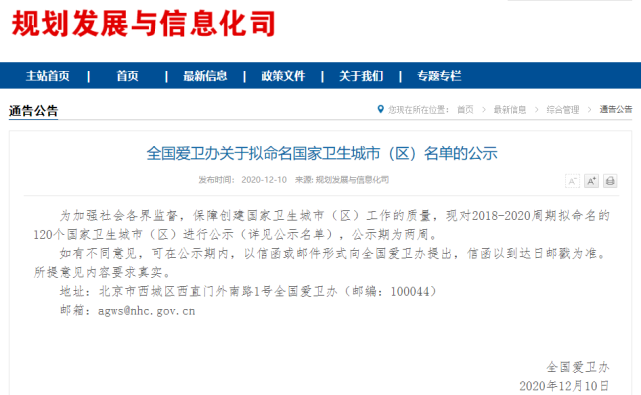 擬命名國家衛(wèi)生城市(區(qū))名單