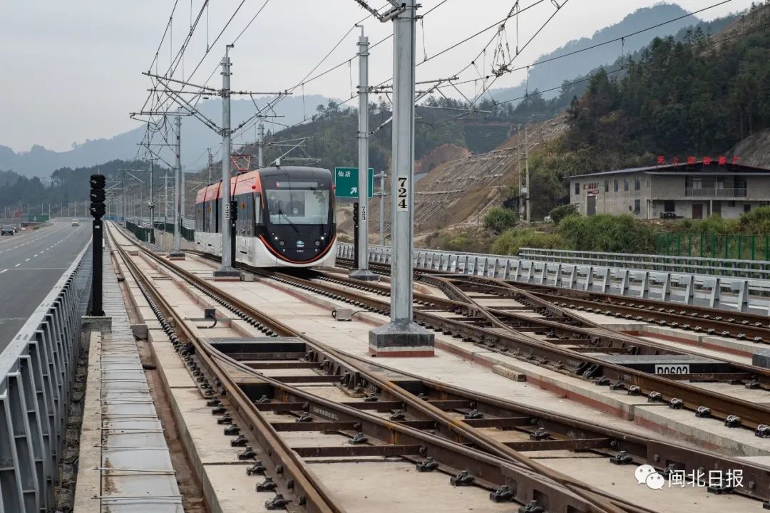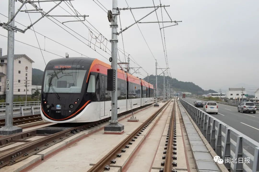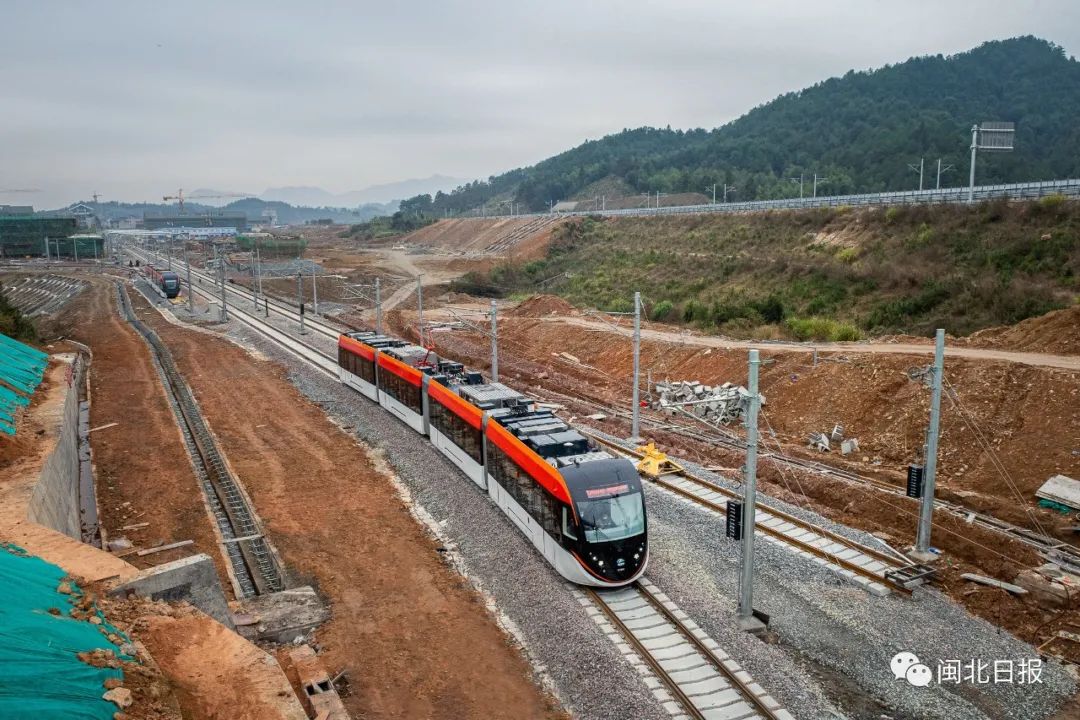 武夷新區(qū)旅游觀光軌道交通南平市站至武夷山景區(qū)線工程概算總額為27.58億元,是全省重點項目之一,也是全省首條旅游觀光軌道交通項目,更是全省首條采用PPP模式建設(shè)的有軌電車項目。線路全長26.43km,起于南平市站站前大道,沿省道303中央分隔帶布置,經(jīng)將口、興田、仙店、南源嶺等八個車站至武夷山景區(qū)南入口,采用全封閉獨立路權(quán)運行方式,使用最高速度為70km/h的新型現(xiàn)代100%低地板接觸網(wǎng)有軌電車。