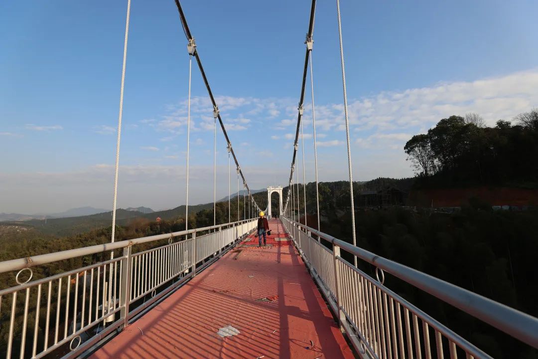 建設(shè)中的玻璃懸索吊橋平臺。(葉秋艷/攝)