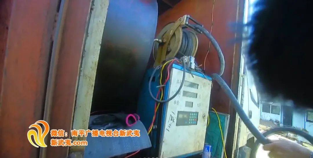 政和縣公安局石屯派出所民警趕到這家沙石料場時,發(fā)現(xiàn)一輛廂式貨車正停在這里,這輛車外觀與普通貨車并沒有兩樣,但是,走近看,車廂內另有玄機。這個類似加油機的機器正將車內的成品油輸出來,加入沙石料場內的一個儲油罐。