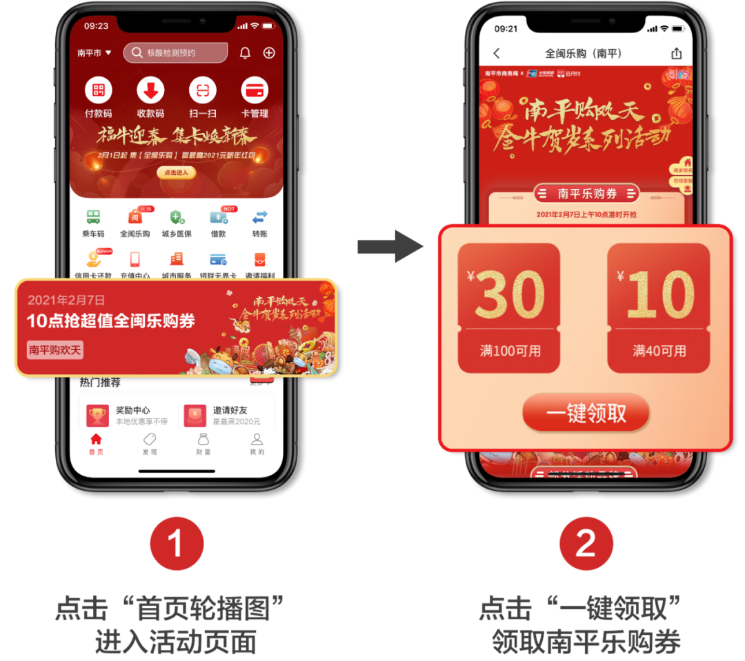 南平市將于2月7日-2月26日期間,充分利用春節(jié)、元宵重要促銷節(jié)點,組織開展“全閩樂購”南平購歡天金牛賀歲系列活動?;顒悠陂g,將通過銀聯(lián)云閃付APP一次性投放500萬元普惠樂購券。全體在南平人員(包括域外來南平人員)均可領(lǐng)取樂購券,數(shù)量有限,先到先得。