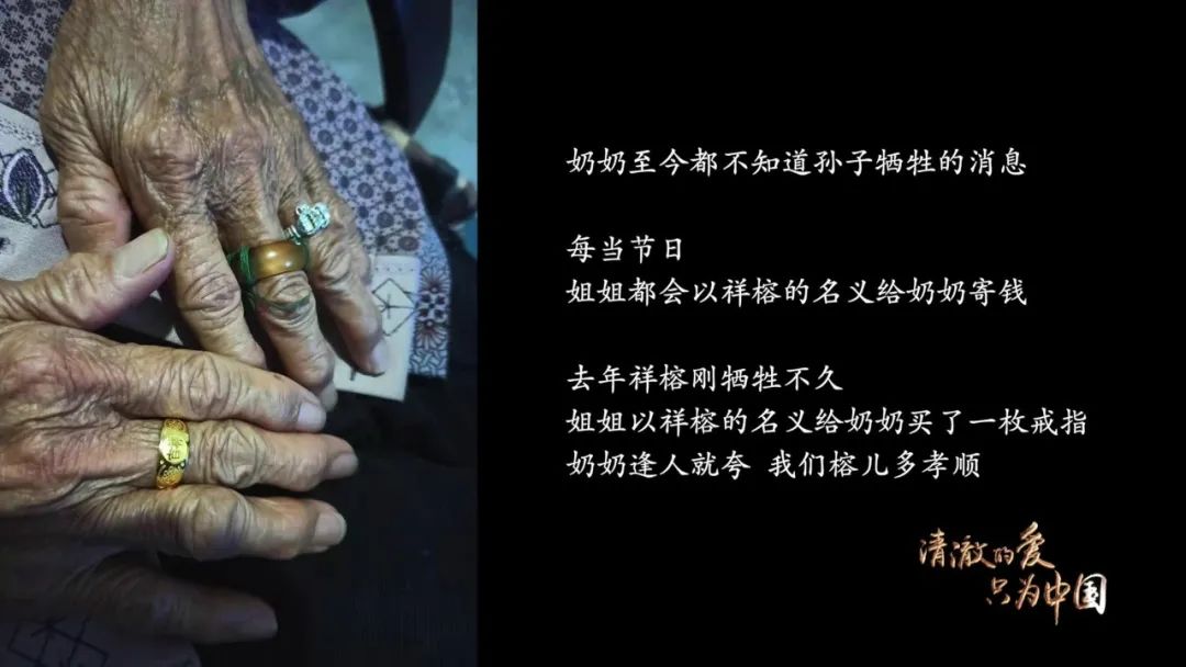 去年,祥榕剛犧牲不久,姐姐以祥榕的名義給奶奶買了一枚戒指,奶奶逢人就夸“我們榕兒多孝順”。