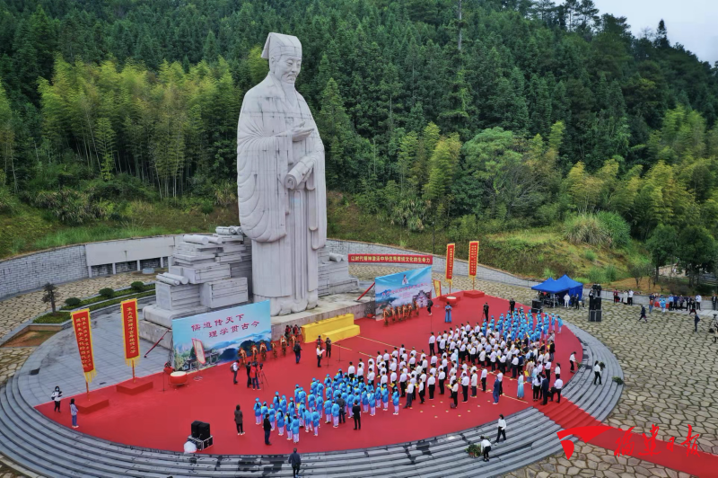臺(tái)海網(wǎng)10月18日訊 據(jù)福建日?qǐng)?bào)-新福建客戶(hù)端報(bào)道 18日,紀(jì)念朱子誕辰891周年祭祀典禮在武夷山五夫鎮(zhèn)朱子雕像廣場(chǎng)舉行。來(lái)自省、南平和武夷山市的代表肩披祭奠綬帶,手持金秋丹桂,分別向朱子像敬獻(xiàn)花籃,敬獻(xiàn)桂枝,并致鞠躬禮?,F(xiàn)場(chǎng),在場(chǎng)嘉賓與100位武夷學(xué)子齊誦《朱子家訓(xùn)》,表達(dá)對(duì)朱子先師圣賢的追思,傳承朱子家禮,弘揚(yáng)朱子文化。