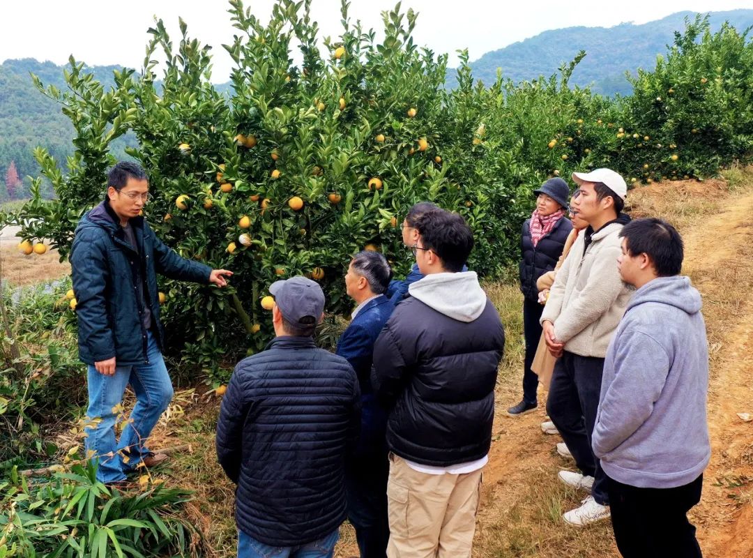 ▲福建省農(nóng)業(yè)科學院的劉韜教授與福建農(nóng)林大學潘騰飛教授一行科技特派員團隊帶領研究生,來到建陽區(qū)崇雒鄉(xiāng)安然家庭農(nóng)場,與當?shù)毓r(nóng)一同交流總結桔柚果樹種植經(jīng)驗,并指導農(nóng)戶科學提升果樹產(chǎn)量和桔柚品質(zhì)。(張行健 攝)