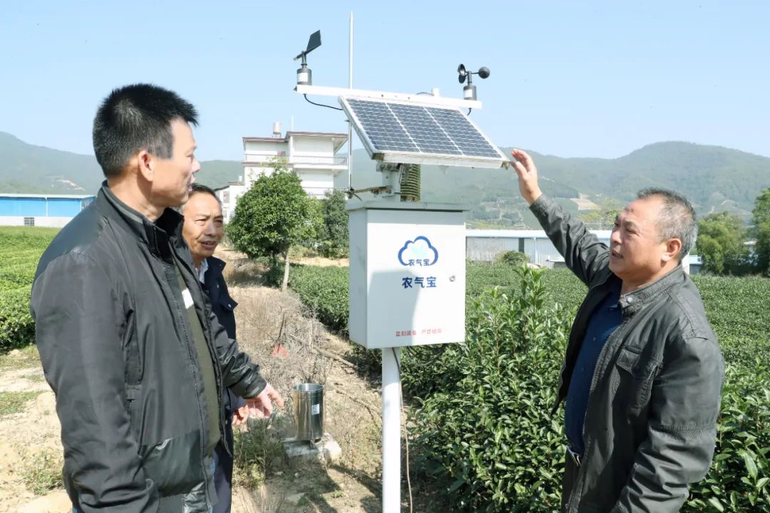 ▲在武夷山茶山“農(nóng)氣寶”智能設備。武夷山依托氣象部門聯(lián)合茶業(yè)局建立的“智慧茶山”平臺,“農(nóng)氣寶”可以實現(xiàn)針對性地搜集茶山環(huán)境信息,有利于氣象工作人員對茶園生態(tài)小氣候進行研究、利用、微調(diào)節(jié)及災害防御,實現(xiàn)茶山監(jiān)控、預警、噴灌的信息化管理。(邱汝泉 攝)