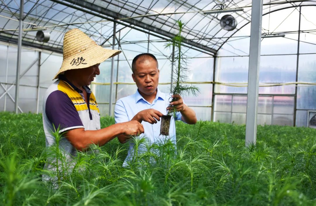 ▲洋口國有林場種苗科科長、科技特派員李勇正在杉木育苗基地內(nèi),指導農(nóng)戶杉木育苗。洋口國有林場長期堅持開展杉木育種科研與推廣應用,水平始終走在世界前列。(池亮亮 攝)
