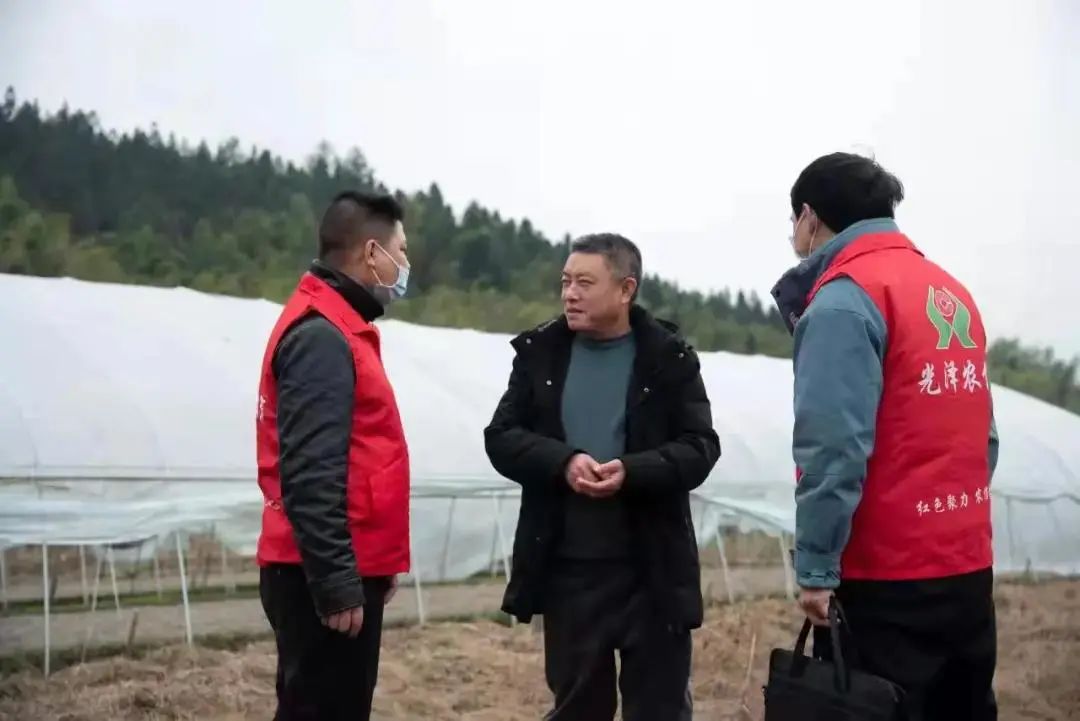 ▲光澤聯(lián)社金融助理走訪科技特派員服務的家庭農(nóng)場。(李福根 攝)