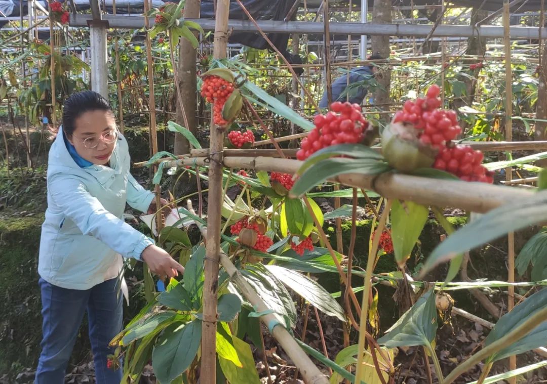 ▲省級科特派、省農(nóng)業(yè)科學院農(nóng)業(yè)生物資源研究所高級農(nóng)藝師蘇海蘭在光澤縣承天農(nóng)林七葉一枝花林下經(jīng)濟示范基地指導。