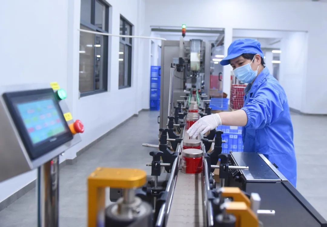 ▲在武夷山市桃淵茗茶葉科學研究所有限公司智能化罐裝茶生產(chǎn)車間,員工正在流水線上忙碌。(黃杰敏 攝)