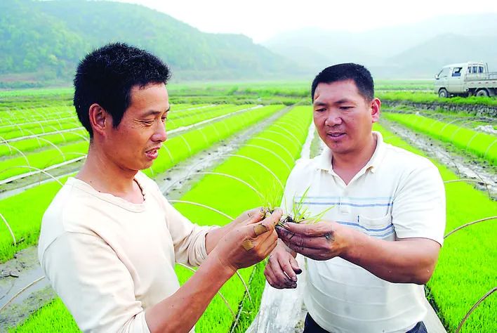 ▲得益于科特派機制的創(chuàng)新,建陽種糧大戶曾雄香(右)實現(xiàn)了從一個“莊稼漢子”到“水稻工程師”的華麗轉(zhuǎn)身,受聘成為“科技特派員”,指導周邊農(nóng)戶種田增收。(王柳珍 攝)