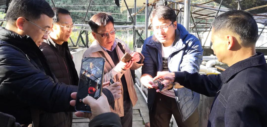 ▲福建省順昌縣兆興魚種養(yǎng)殖有限公司長期致力于淡水名特優(yōu)新品種的開發(fā),與福建省淡水水產(chǎn)研究所專家團一起組建科技特派員工作站,攻克親本培育技術、訓食轉(zhuǎn)料、人工催產(chǎn)、孵化、苗種培育及子代親本培育等關鍵性問題。圖為科特派團隊正在對“大刺鰍規(guī)?;庇梆B(yǎng)成技術”進行驗收工作。(周雙雙 游小玲 攝)