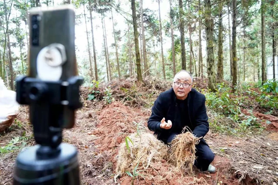 ▲全國脫貧攻堅先進個人、順昌縣大歷鎮(zhèn)鄉(xiāng)村振興發(fā)展中心科技特派員高允旺用抖音傳播竹蓀種植技術。(盧國華 攝)
