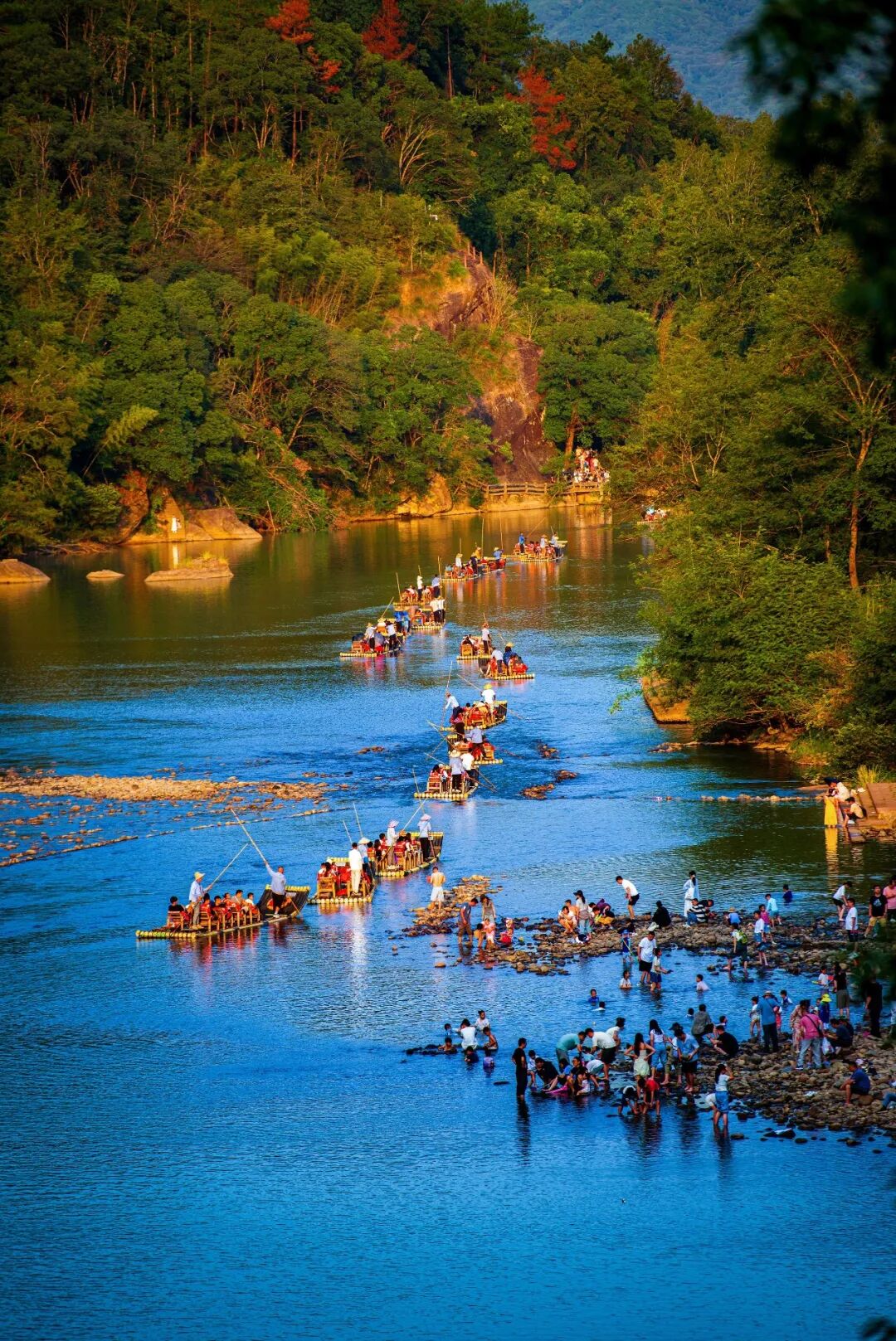 泛舟九曲,丹霞迎客秋意濃。(張?bào)阆?彭善安 攝)
