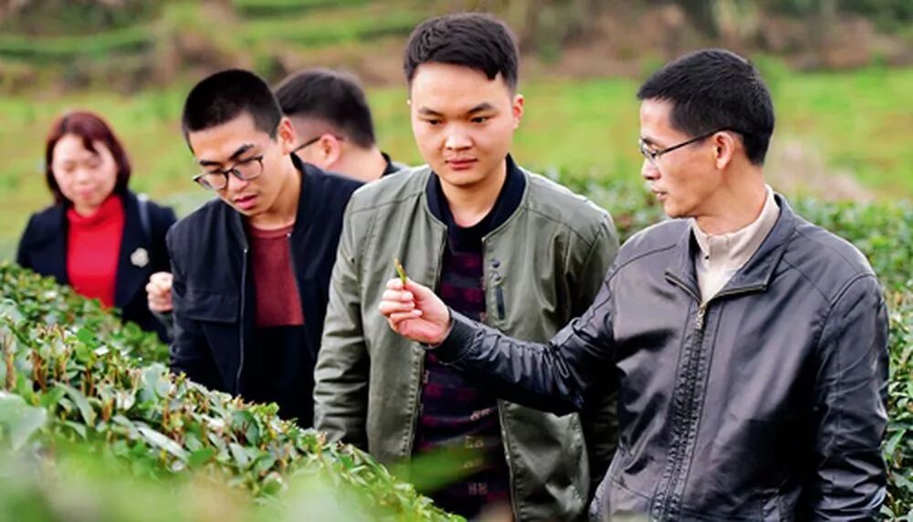 武夷山市星村鎮(zhèn),科技特派員劉國(guó)英(前)給學(xué)生們講解茶葉知識(shí)。資料圖(魏培全 攝)