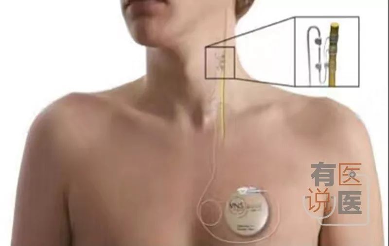 安裝在胸部的脈沖發(fā)生器和安裝在頸部的刺激電極