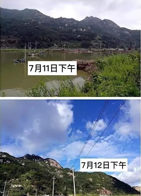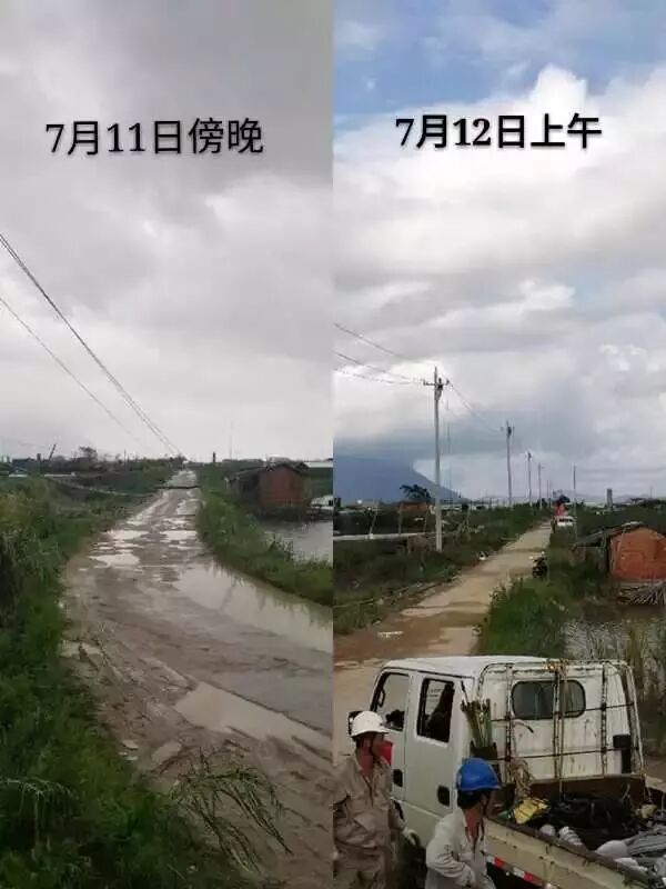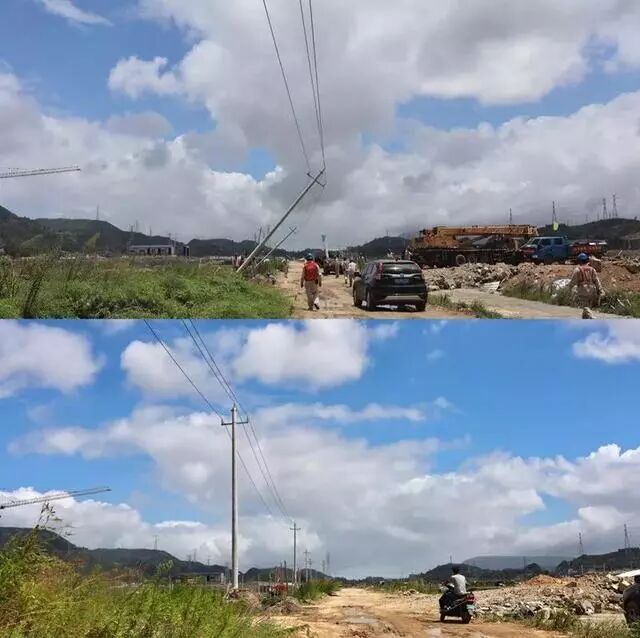 國(guó)網(wǎng)石獅供電公司支援霞浦城關(guān)鎮(zhèn)10千伏東吾路線(xiàn)、目海路線(xiàn)搶修對(duì)比圖.。(郭森鴻 許偉哲/攝)