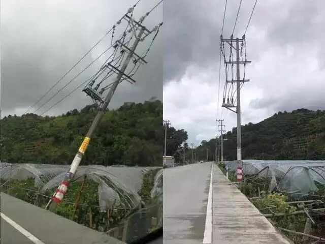 國(guó)網(wǎng)漳州供電公司支援福州羅源縣鑒江鎮(zhèn)10千伏井水線(xiàn)搶修對(duì)比圖。(林國(guó)慶/攝)
